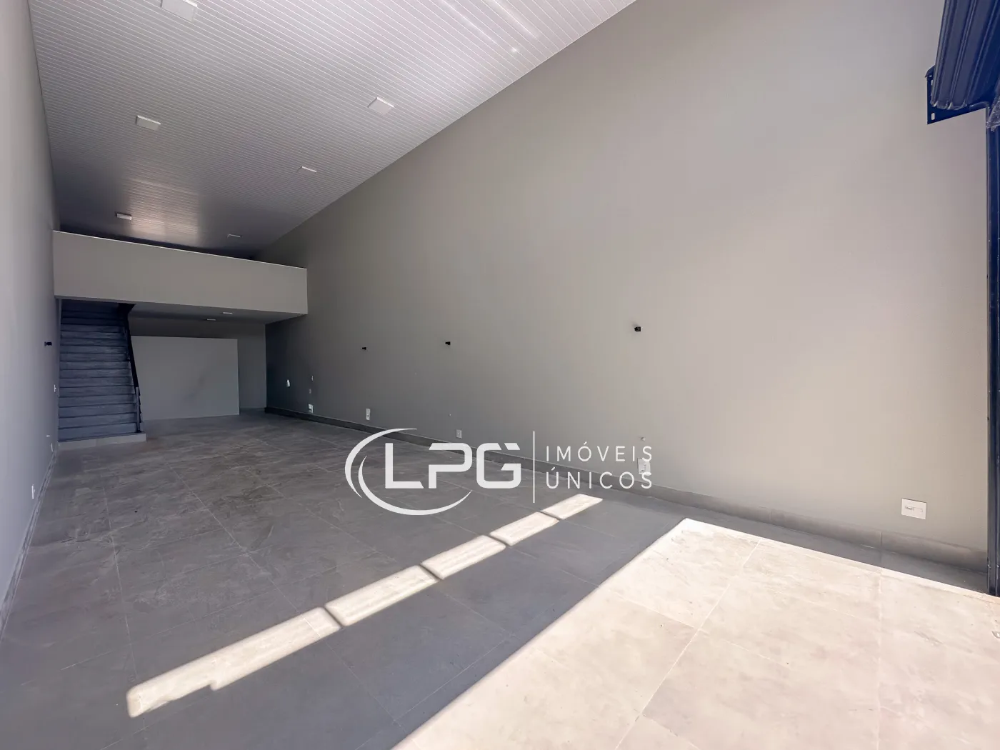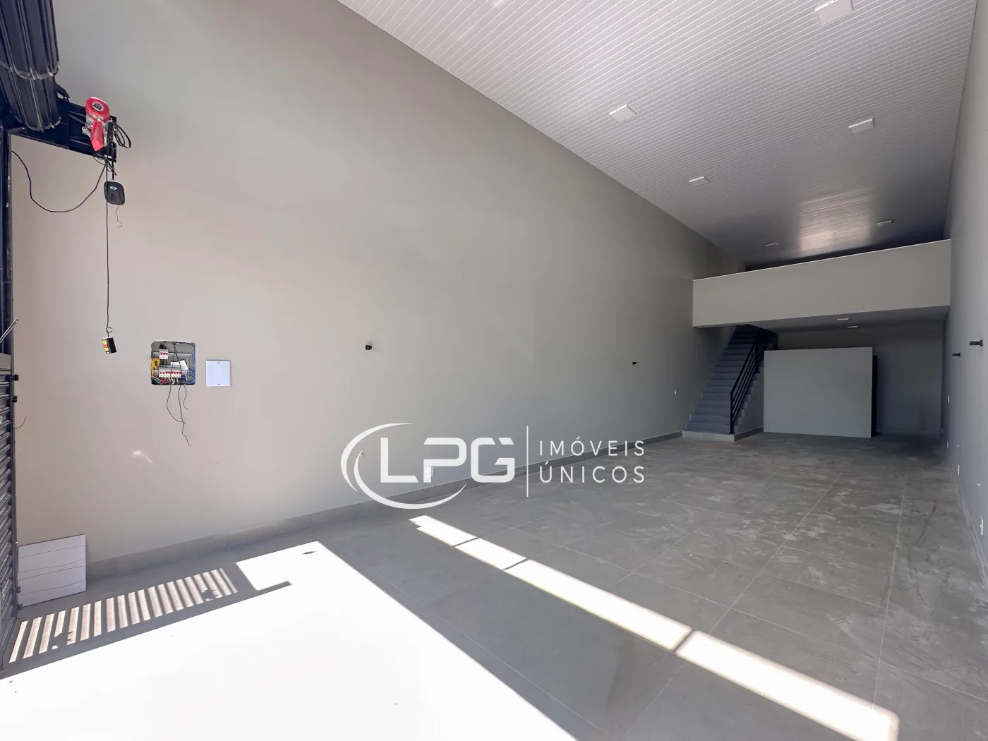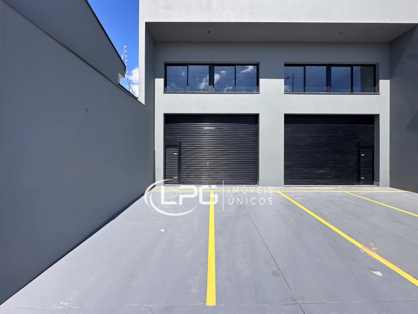 Com sua fachada moderna, o espaço conta com 110m² no pavimento térreo e mais 30m² de mezanino, totalizando 140m² bem distribuídos. Ele possui 2 banheiros e 2 vagas de garagem, oferecendo praticidade e funcionalidade para diferentes tipos de atividade.
