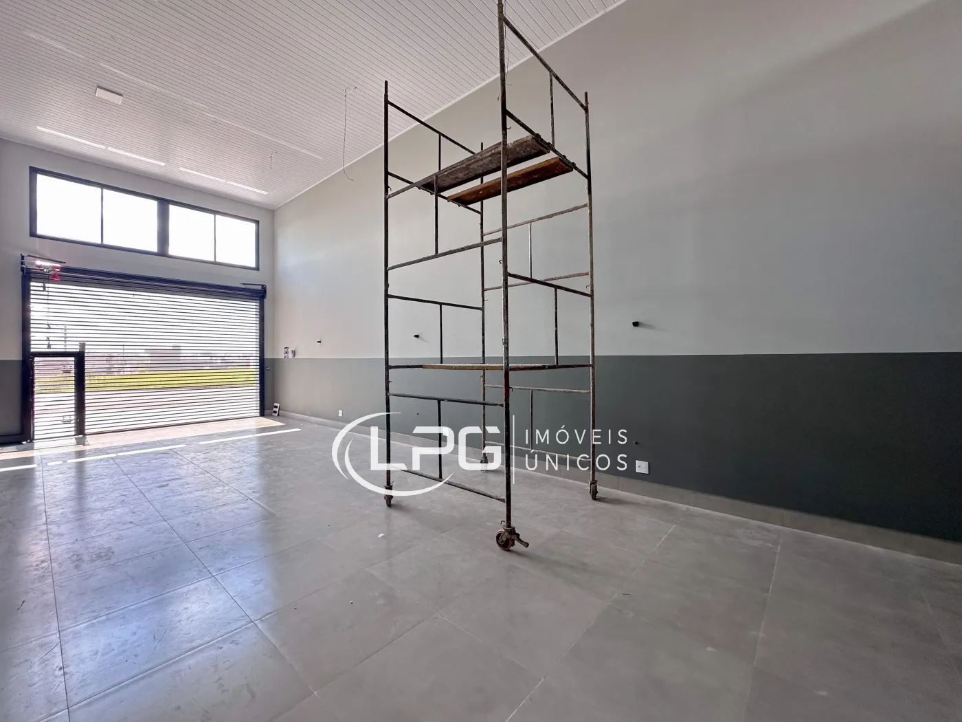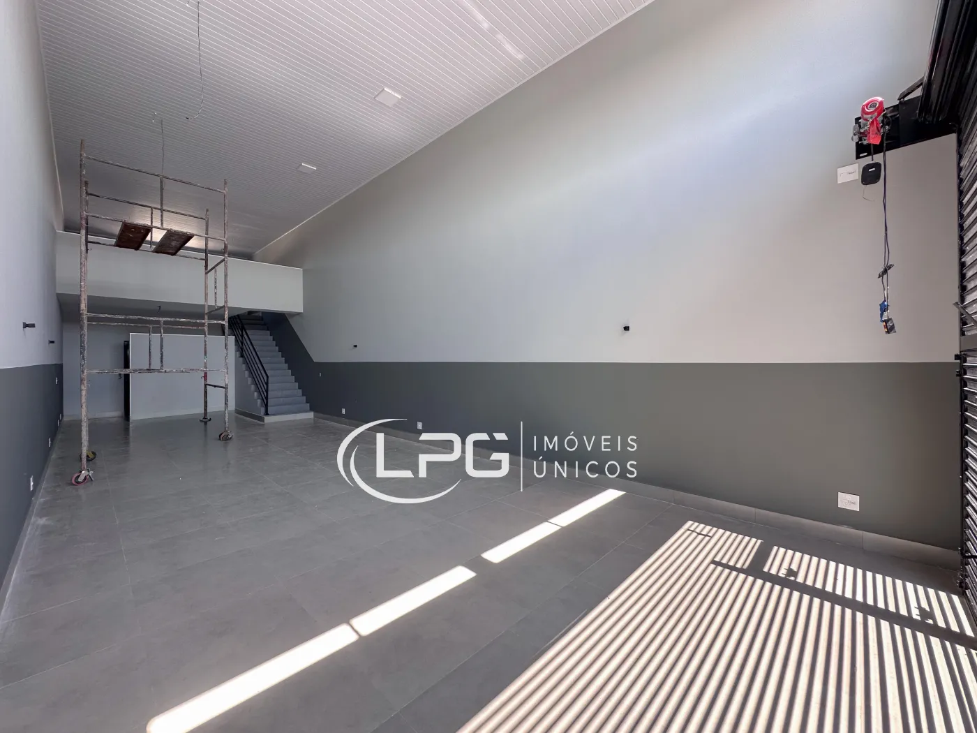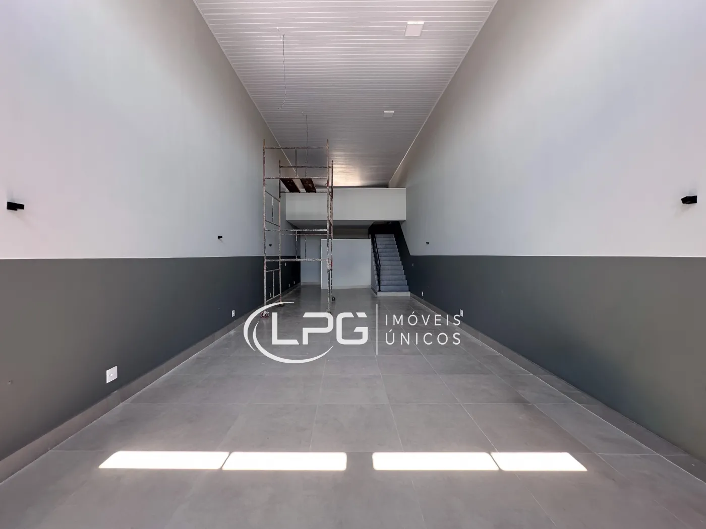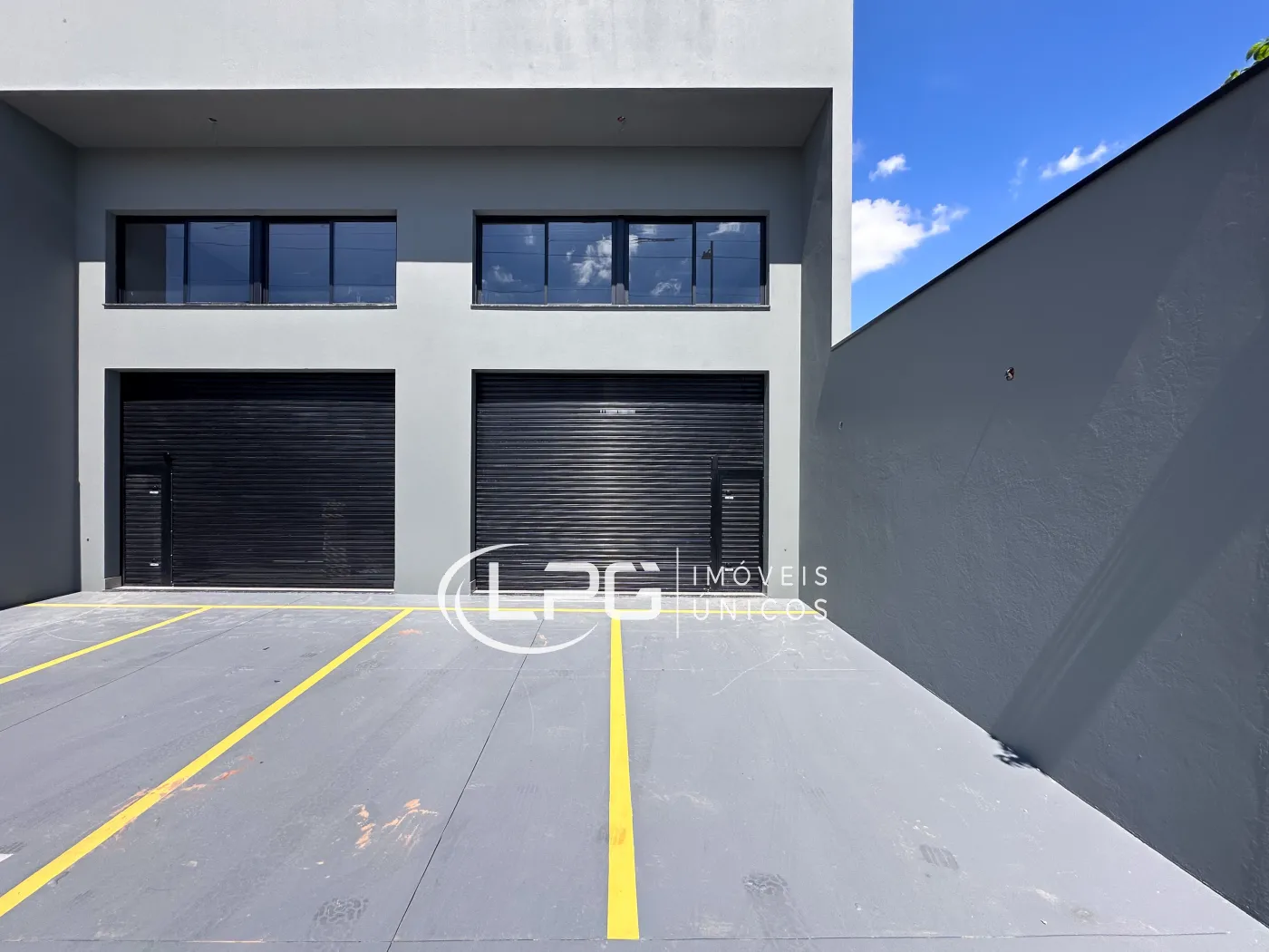 Com sua fachada moderna, o espaço conta com 110m² no pavimento térreo e mais 30m² de mezanino, totalizando 140m² bem distribuídos. Ele possui 2 banheiros e 2 vagas de garagem, oferecendo praticidade e funcionalidade para diferentes tipos de atividade.