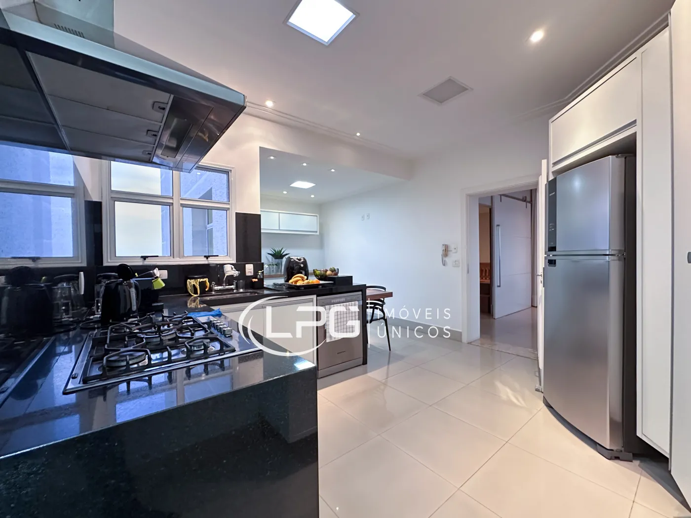 Medindo 267m² de área útil, este imóvel conta com living em dois ambientes, lavabo, escritório, varanda gourmet com churrasqueira a carvão e uma vista panorâmica. Possui 4 suítes, sendo uma suíte com closet e hidromassagem, todas com armários. Além disso, também dispõe de uma linda cozinha com armários planejados e copa, lavanderia independente com dormitório de apoio e 3 vagas de garagem paralelas.