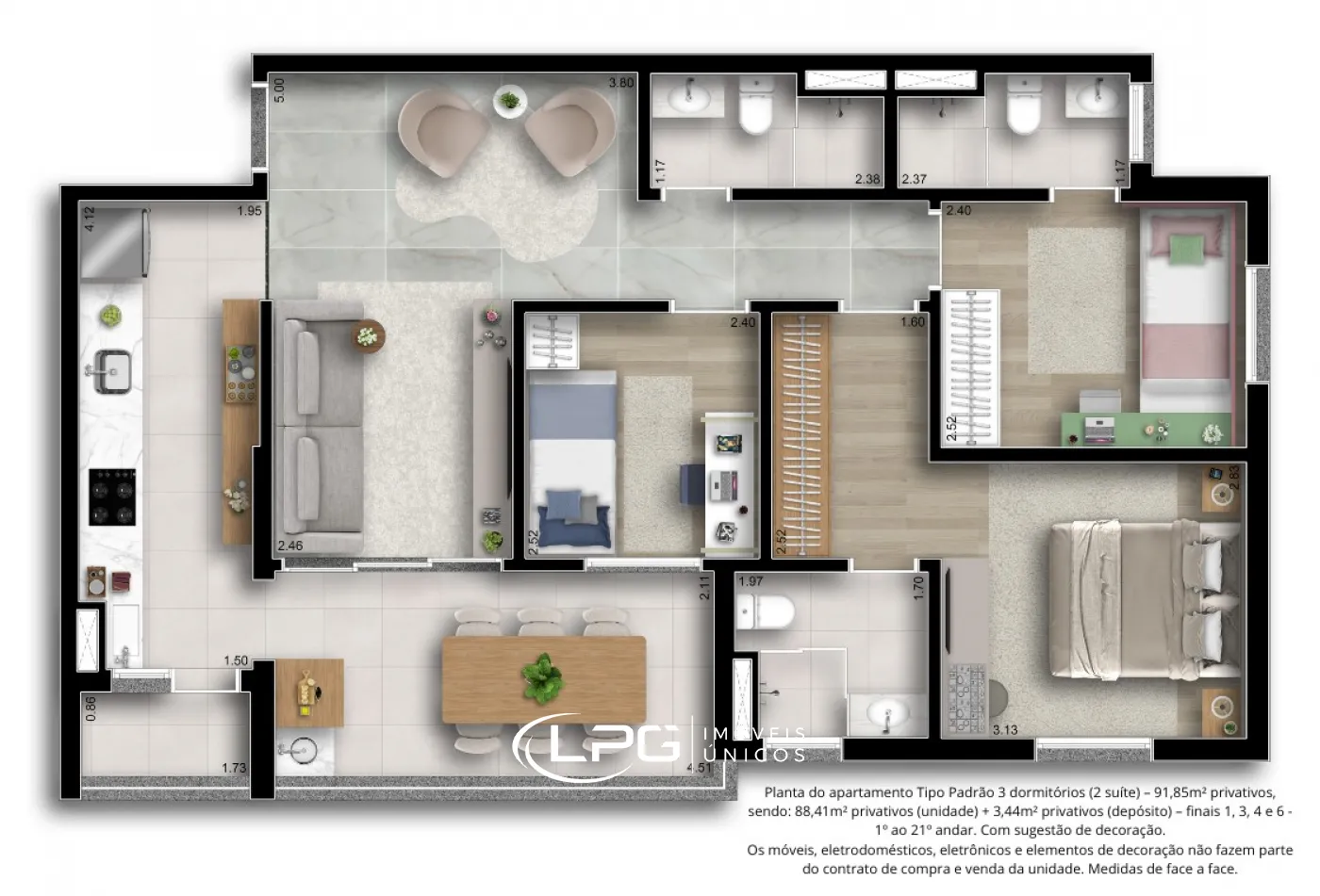 Este apartamento de 88m² de área construída, somando 91m² com o depósito, oferece um amplo e moderno espaço para viver. A construção em alvenaria convencional permite flexibilidade, com opções de personalização de planta, ideal para quem busca um ambiente exclusivo e funcional.