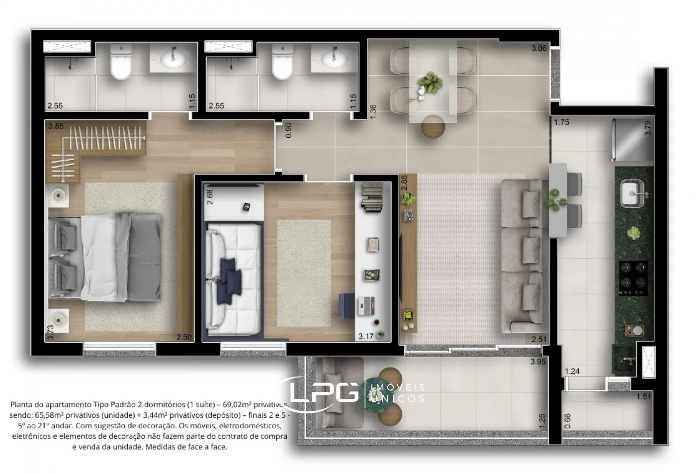 Este apartamento de 65m² de área construída, somando 69m² com o depósito, oferece um amplo e moderno espaço para viver. A construção em alvenaria convencional permite flexibilidade, com opções de personalização de planta, ideal para quem busca um ambiente exclusivo e funcional.