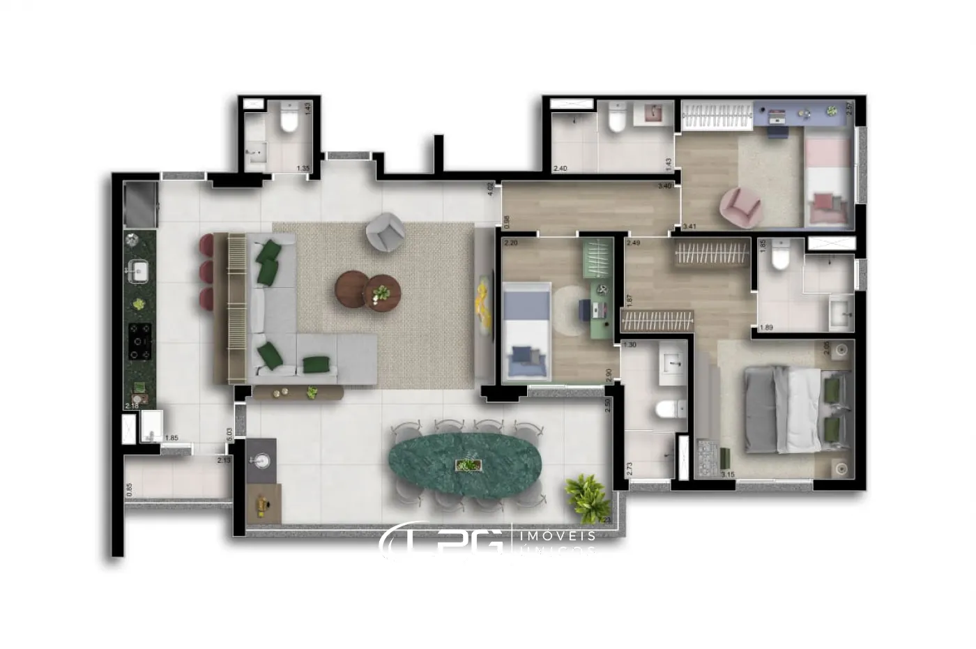 Este apartamento de 114,93m² de área construída, somando 117,90 m² com o depósito, oferece um amplo e moderno espaço para viver. A construção em alvenaria convencional permite flexibilidade, com opções de personalização de planta, ideal para quem busca um ambiente exclusivo e funcional.