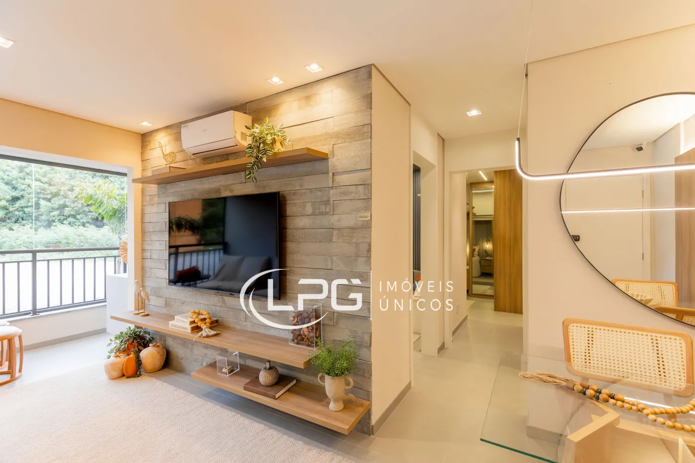 O piso nivelado entre a sala e o terraço cria uma integração harmoniosa entre os ambientes internos e externos, tornando o espaço perfeito para receber visitas e aproveitar momentos de lazer.