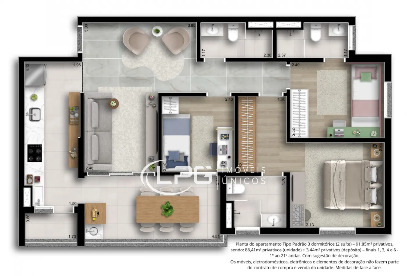Este apartamento de 88m² de área construída, somando 91m² com o depósito, oferece um amplo e moderno espaço para viver. A construção em alvenaria convencional permite flexibilidade, com opções de personalização de planta, ideal para quem busca um ambiente exclusivo e funcional.