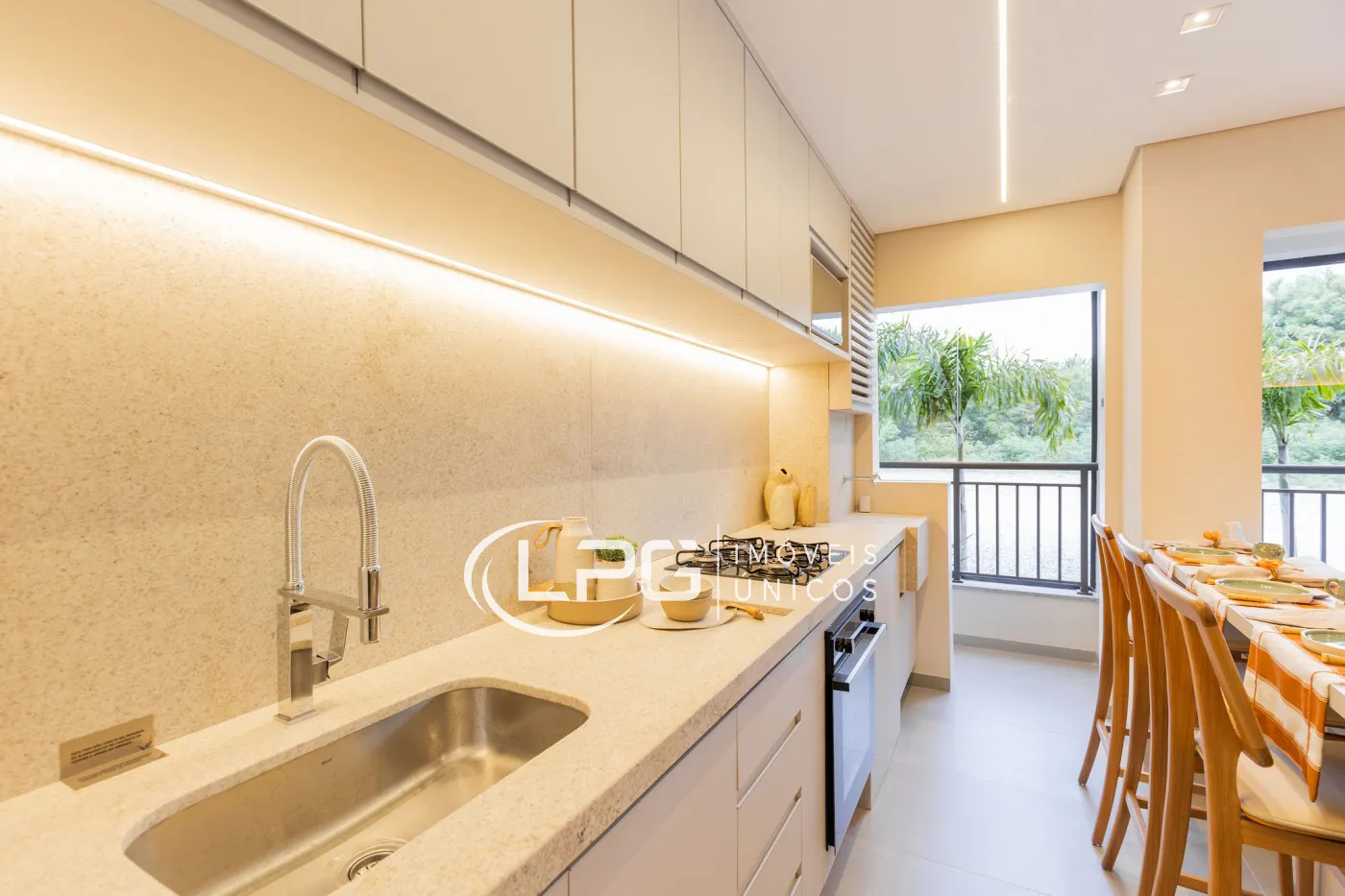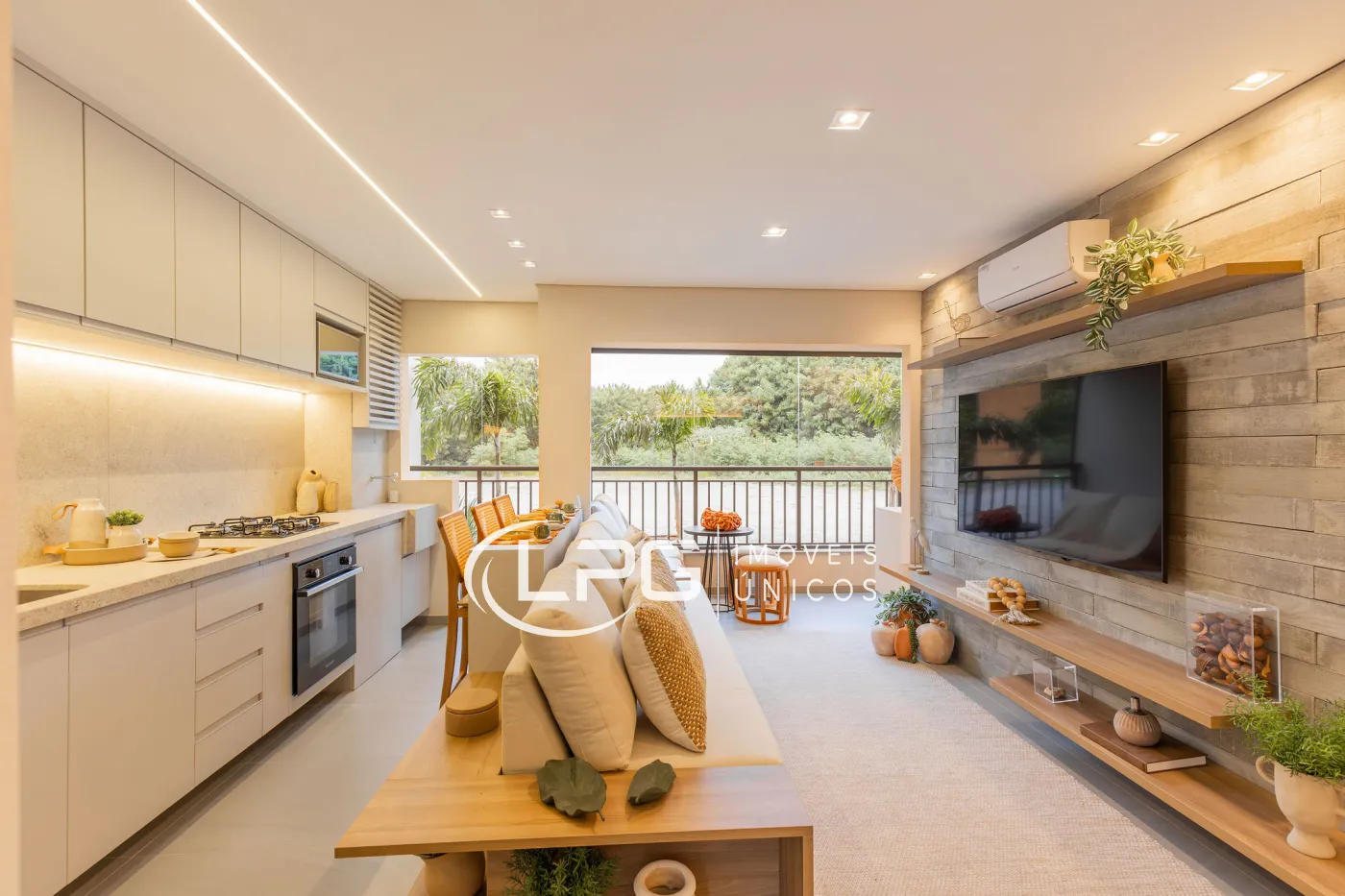 O piso nivelado entre a sala e o terraço cria uma integração harmoniosa entre os ambientes internos e externos, tornando o espaço perfeito para receber visitas e aproveitar momentos de lazer.